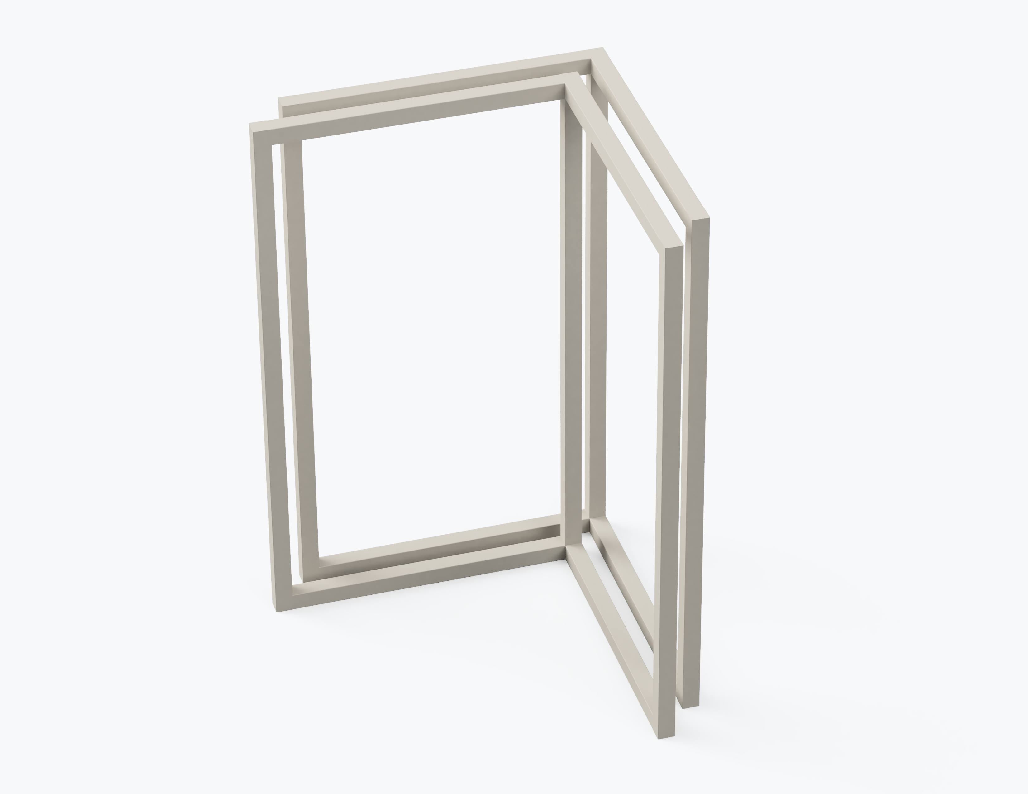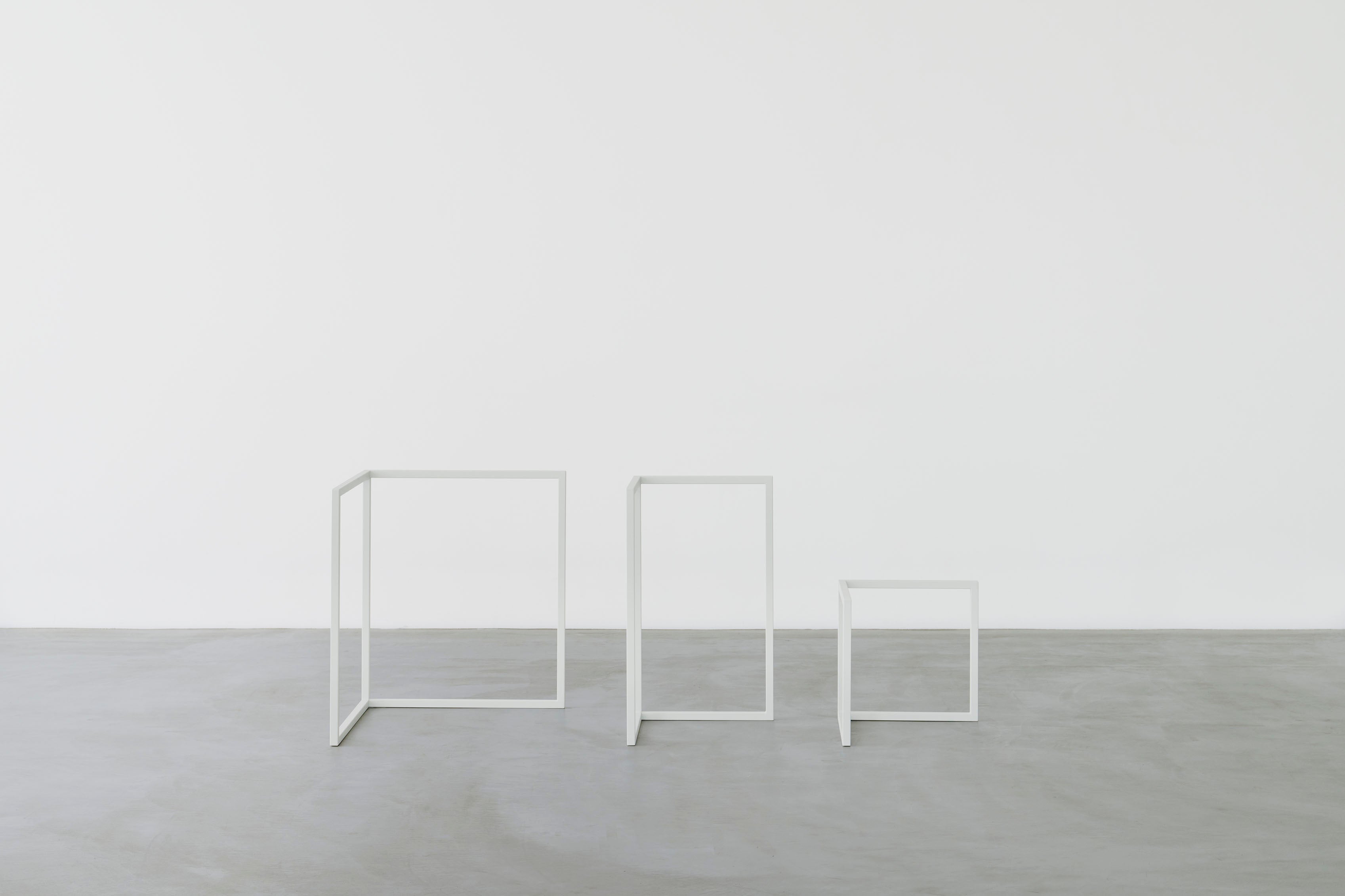 leg(馬足フレーム)S,Mサイズ各2脚とtabletop half melamine(天板)2枚のセットです。legはtabletopと組み合わせてテーブルや陳列棚として使えます。置き方次第で高さを変えることができ、作業台・ローテーブル・ひな壇・陳列棚など目的に応じて自由にカスタマイズできます。